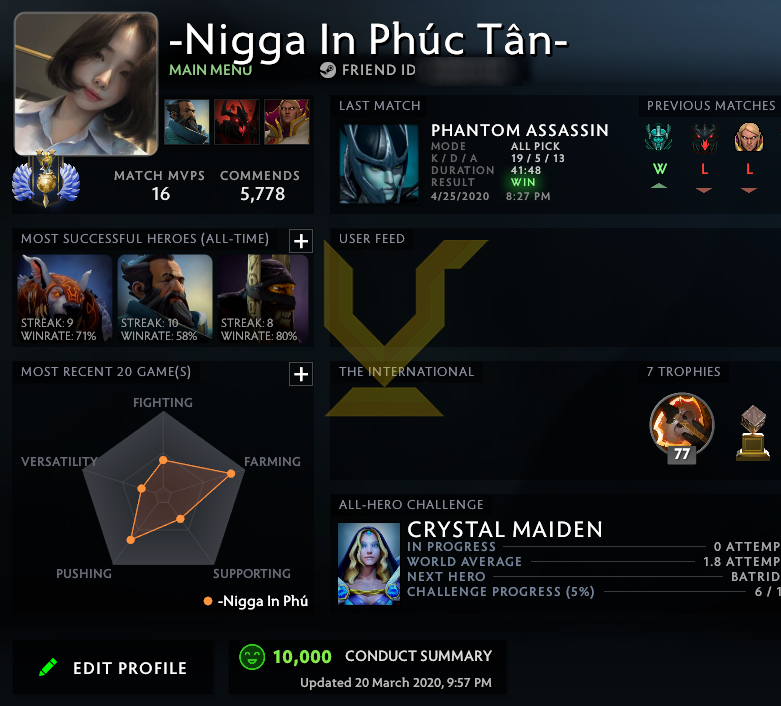 - Main Heroes: Invoker, Kunkka, Pudge